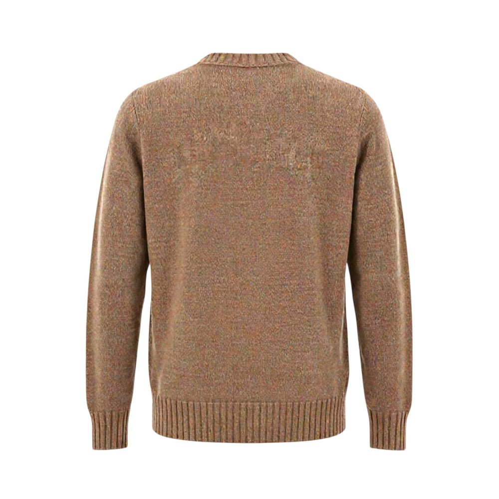 CREW NECK WOOL SWEATER WITH APRESS EMBROIDERY, SKY BROWN