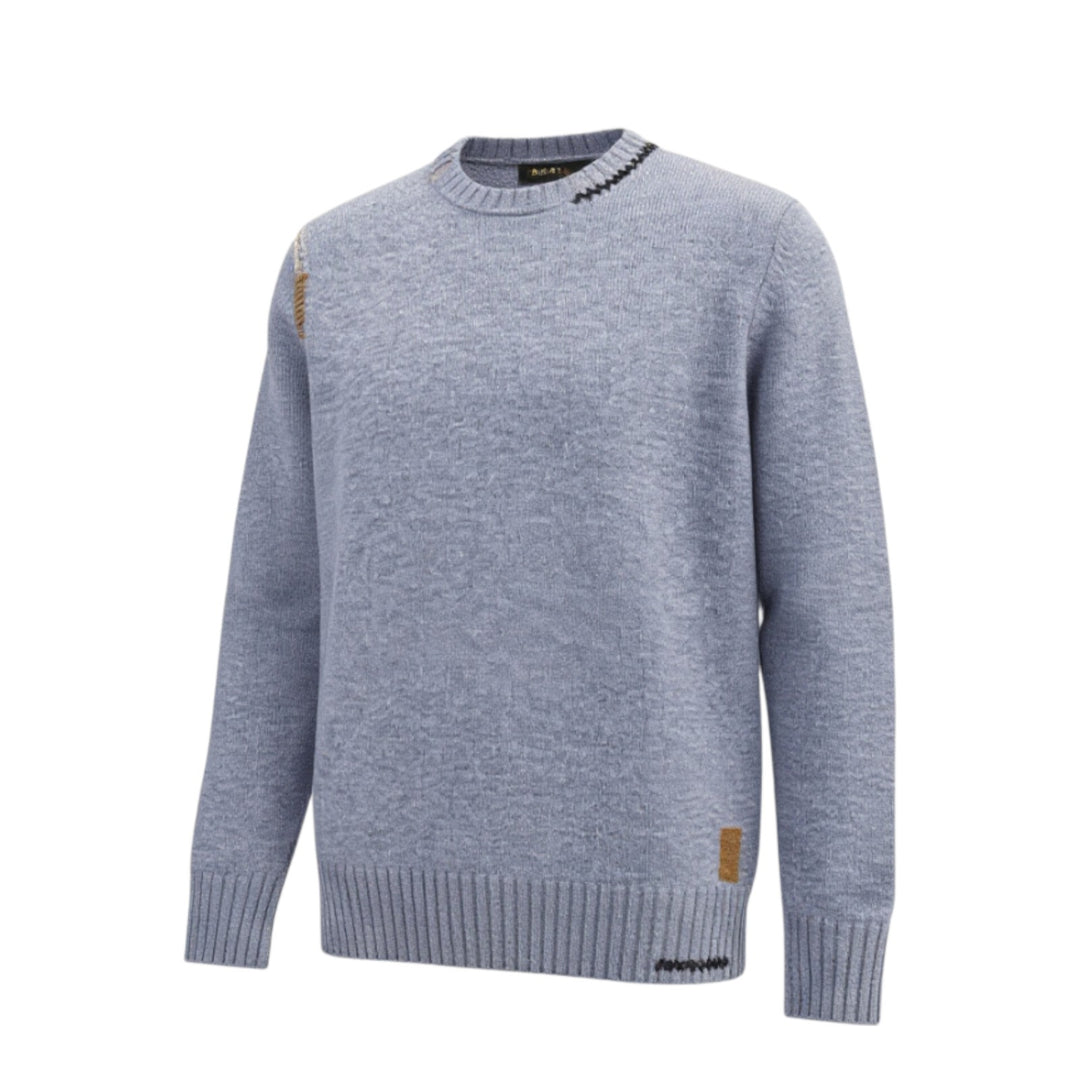 CREW NECK WOOL SWEATER WITH BLUE BOMBARDINO EMBROIDERY