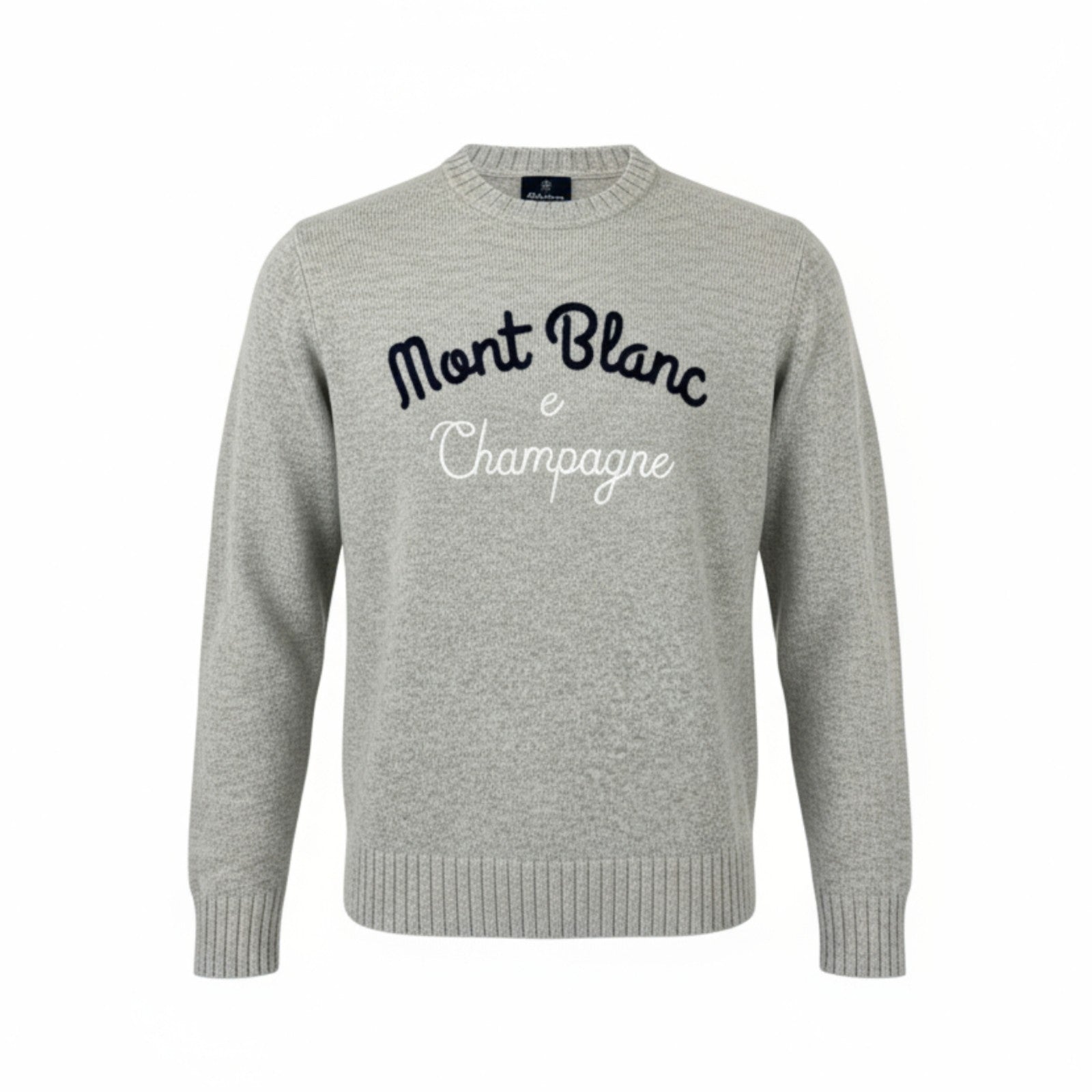 CREW NECK WOOL SWEATER WITH MONT BLANC EMBROIDERY, GREY