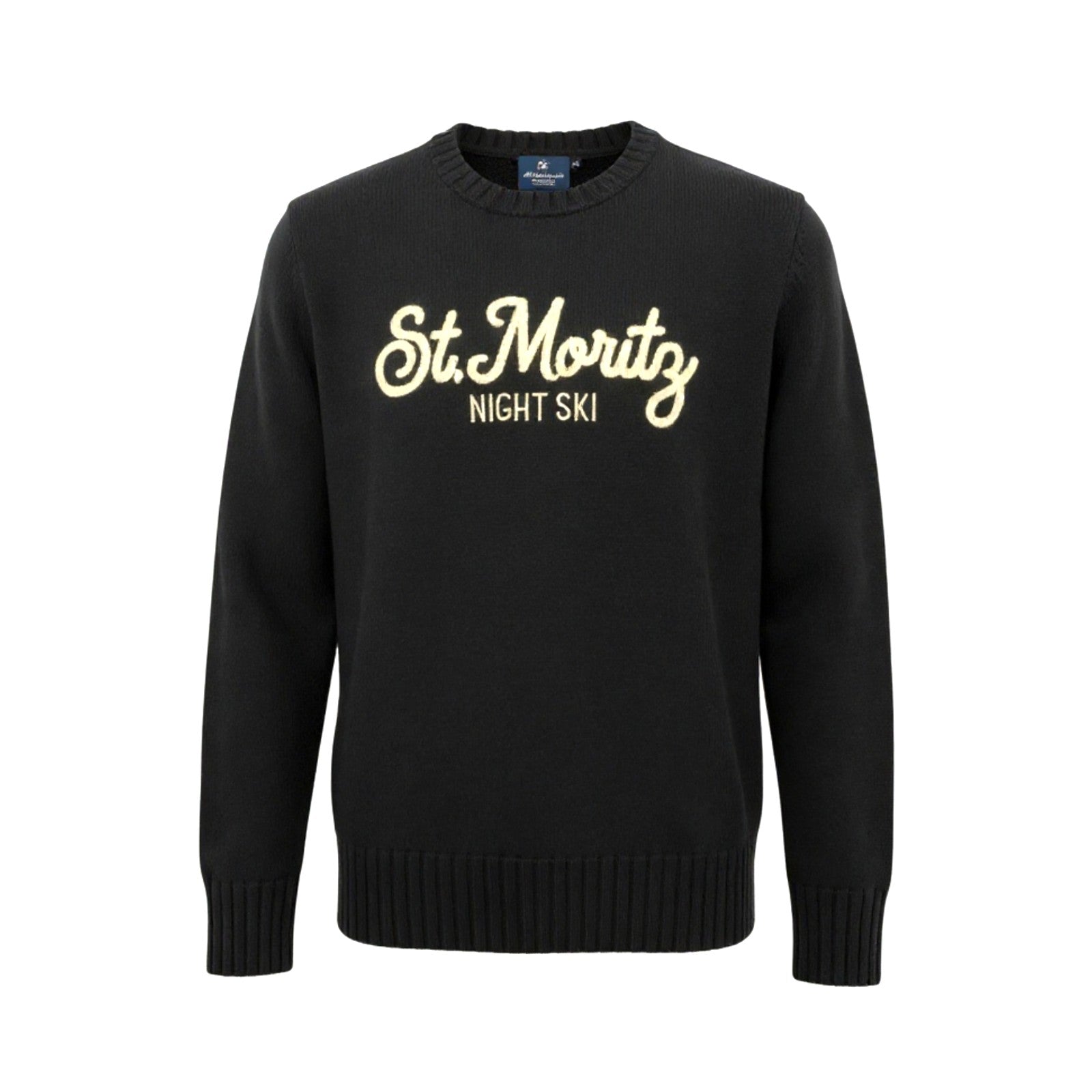 ST. MORITS EMBROIDERED CREW NECK WOOL SWEATER IN BLACK