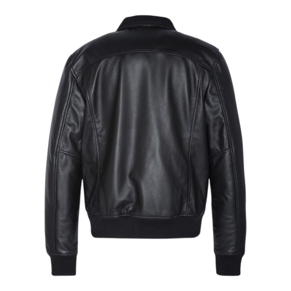 BLACK QUILTED GENUINE LEATHER BOMBER