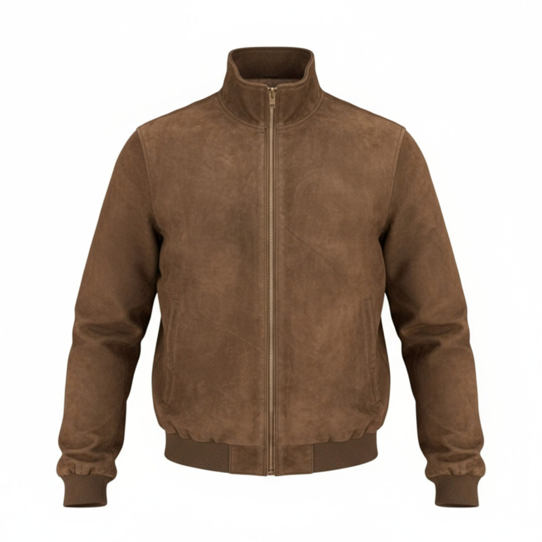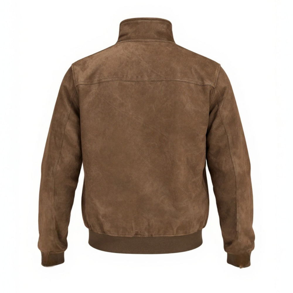 DARK BROWN GENUINE NUBUCK LEATHER ZIP-UP JACKET