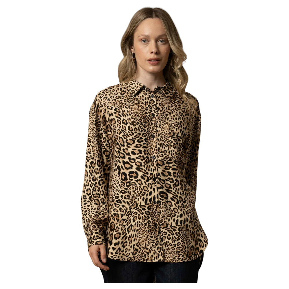 Lo stile fluido e leggero di questa camicia in pura viscosa è impreziosito dalla stampa animalier che conferisce un fascino esotico al capo. Il modello presenta la parte posteriore più lunga, taschino sul davanti e colletto a punta.