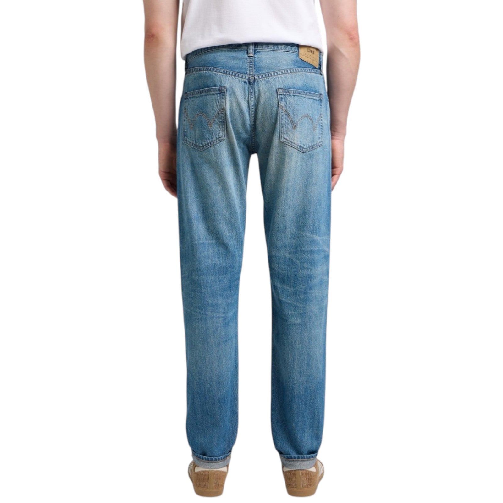 I Regular Tapered Jeans sono una rivisitazione moderna del classico denim giapponese. Sono realizzati in denim Kaihara Indigo Lightweight Red Selvage da 10,5 once, lavato per conferire una mano più morbida e una struttura leggermente fluida. Presentano una vestibilità regular tapered, vita media, cinque tasche con patta e bottone, e sono rifiniti con una toppa in carta di cellulosa al 100% sul retro.