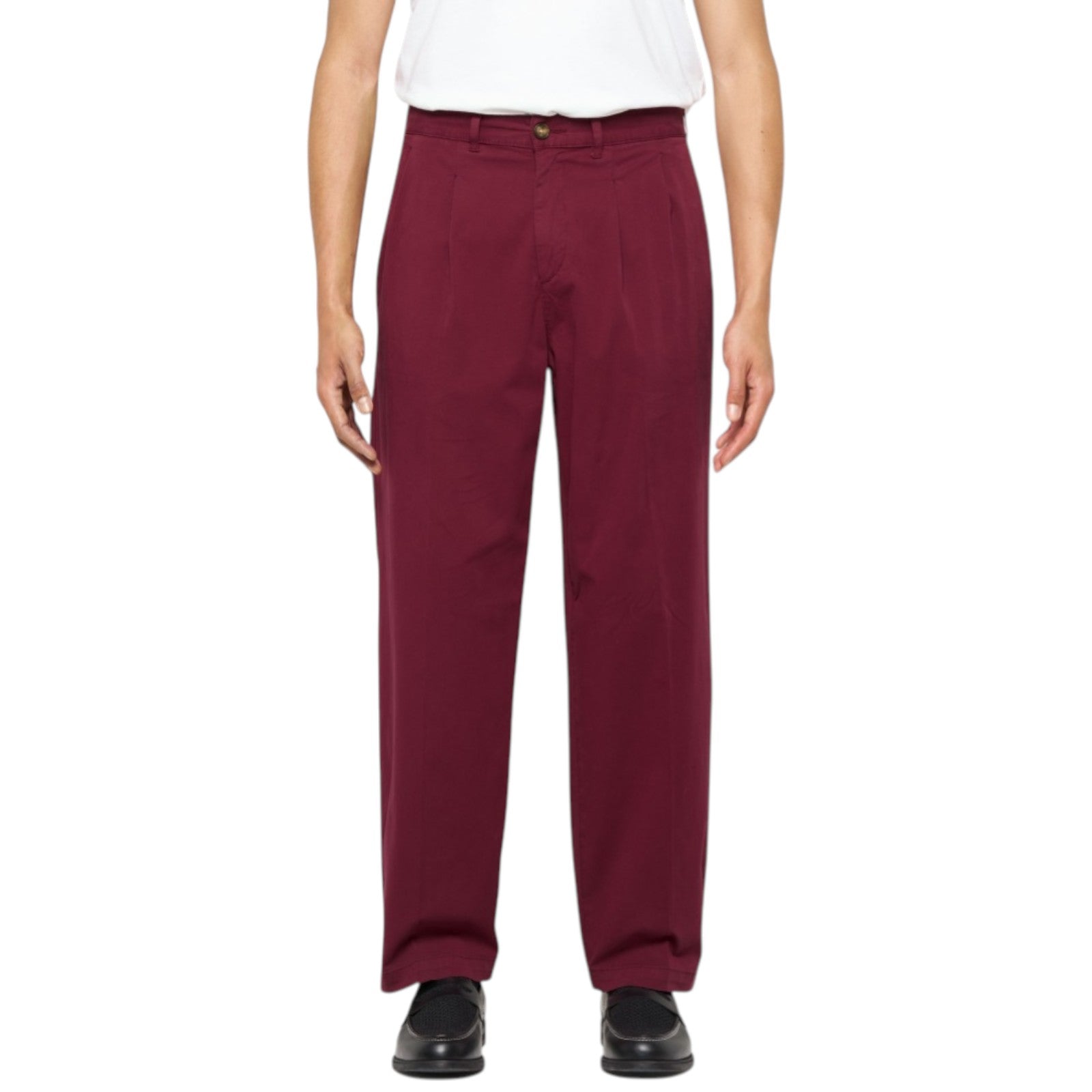 Con due pieghe nette sul davanti e tasche posteriori profilate, i pantaloni Sorren offrono una reinterpretazione elegante e casual del classico taglio pantalone. Questo modello casual è realizzato in un pregiato tessuto twill in misto cotone ed elastan, caratterizzato da una caratteristica tonalità di rosso prugna intenso, e presenta una comoda silhouette a gamba dritta.