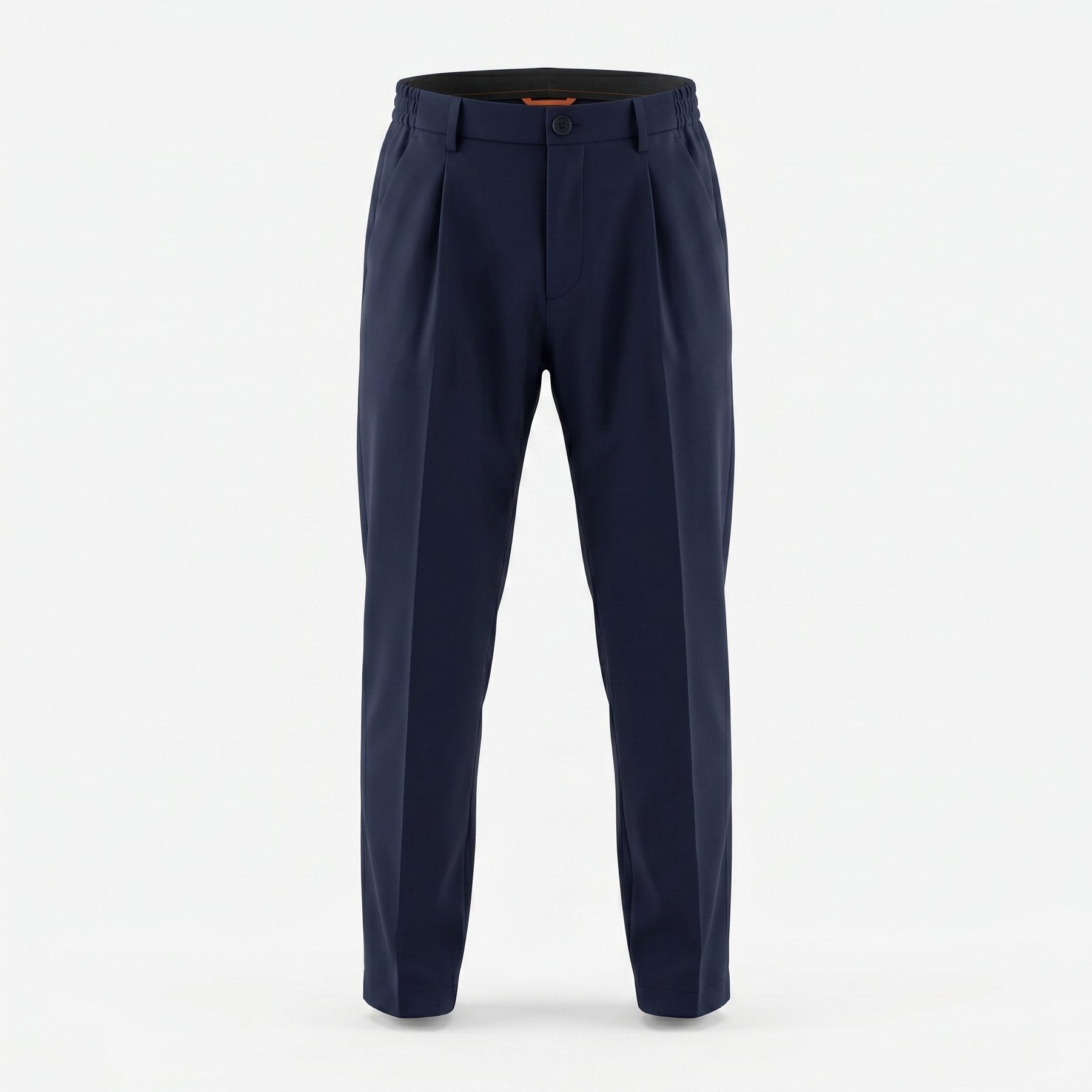 Crafted from a sophisticated blend of 91% nylon and 9% elastane, these trousers boast an impeccable regular fit and an extremely pleasant technical hand-feel. The design is enhanced by a single front pleat on each side, providing soft volume at the hips and a tapered silhouette that elegantly narrows towards the ankle. The closure is versatile and functional, featuring a zip, buttons, and drawstring, completed by an elasticated waistband for optimal comfort.