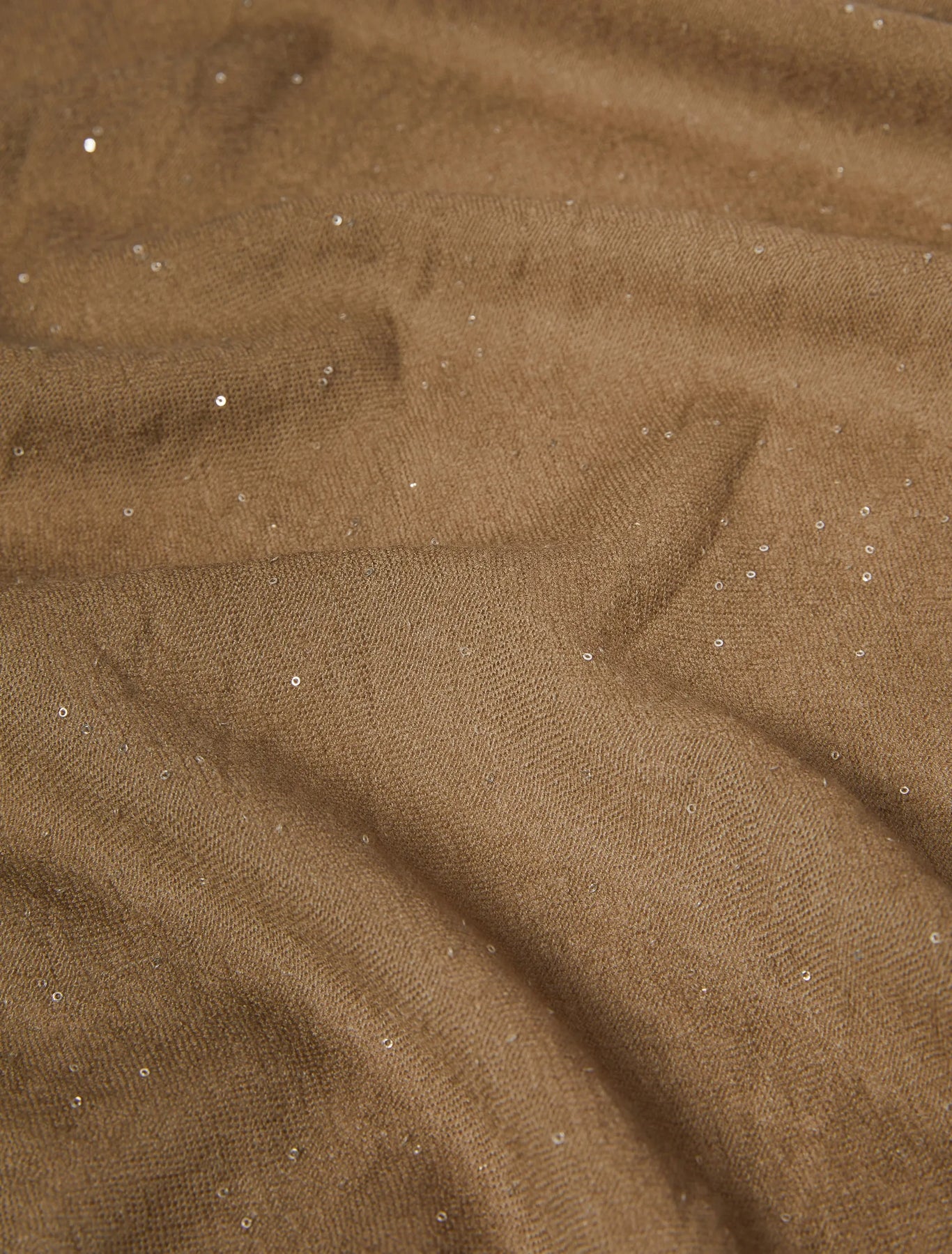 Una cascata di stelle, da indossare day and night: nuova stola in lana con micro paillette inserite. Scintillanti sotto il sole, tra blazer e maglie quotidiane.
